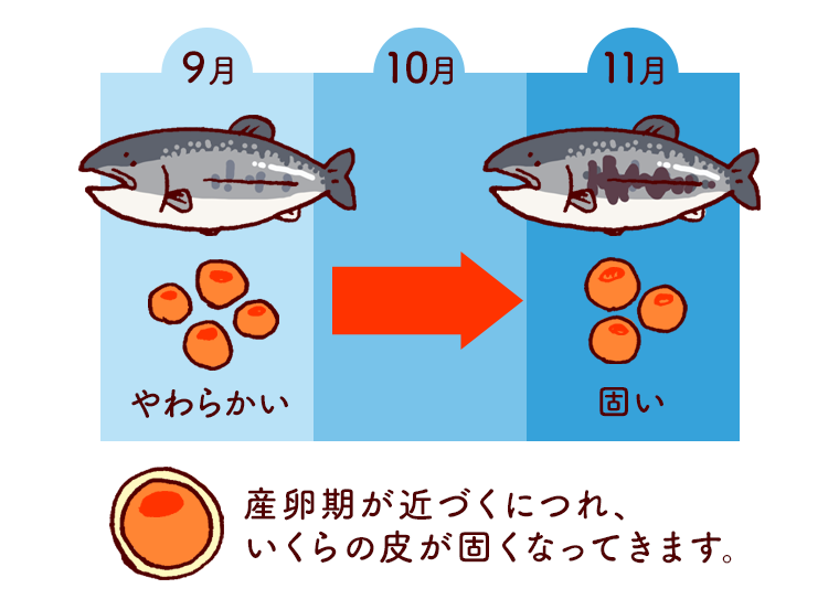 もう1つの理由が重要で、卵の皮質です。漁期前半は栄養を取り入れるためにやわらかかった皮質も、後半になると産卵時に壊れないよう固くなるのです。