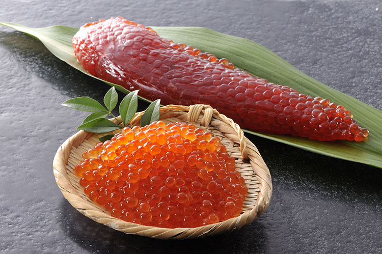 卵は筋子の加工品が主流です。 「ますこ」と呼ばれる塩漬け・醤油漬けも通の味として人気があります (筆者も“ますこ”は大好きです)。